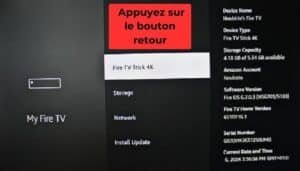 Appuyez 7 fois sur le bouton « Fire TV Stick 4K« .